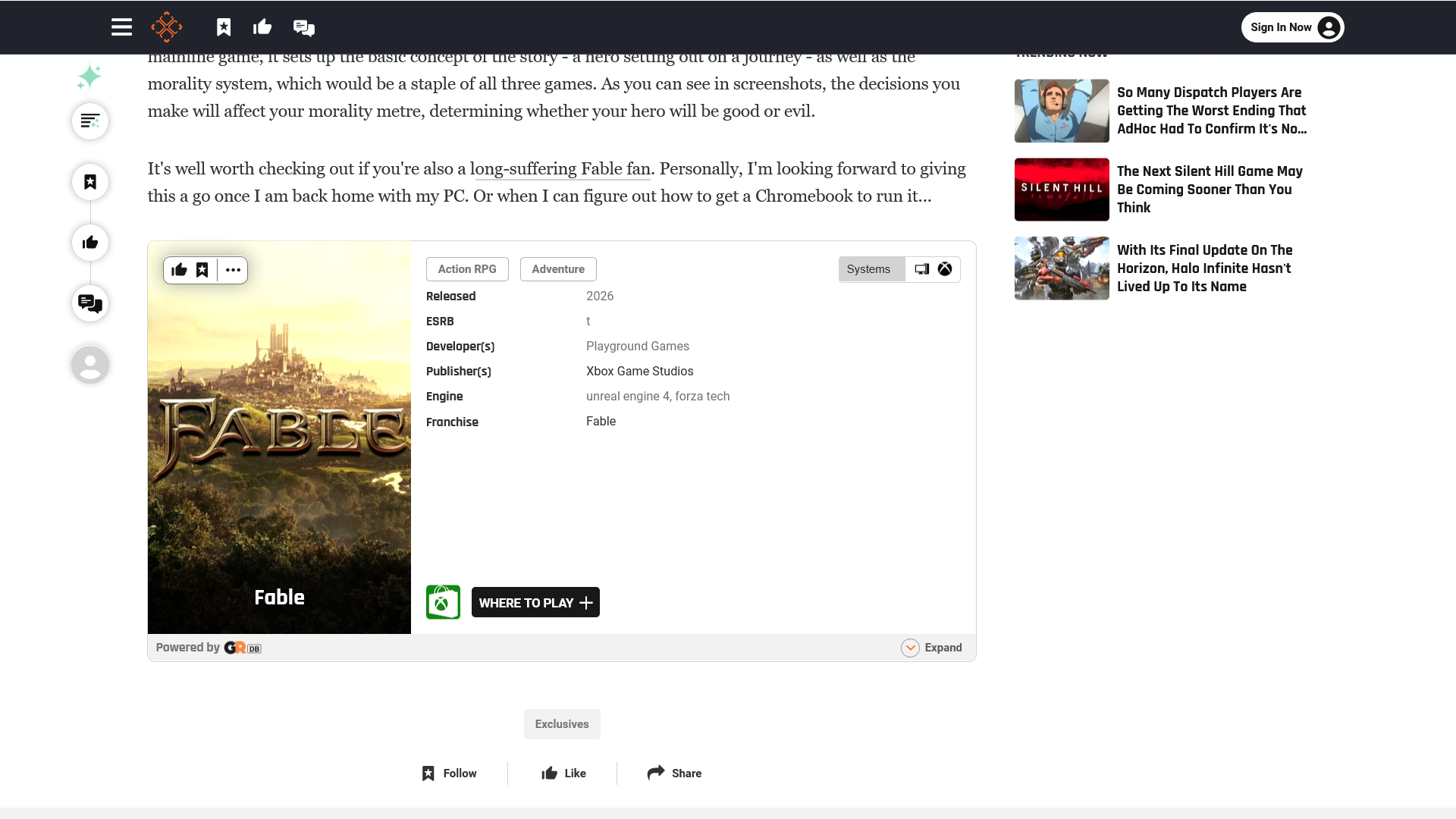 Крупное игровое издание The Gamer посвятило отдельный материал ремейку игры Fable Flash Game, который в октябре выпустил FableGame.