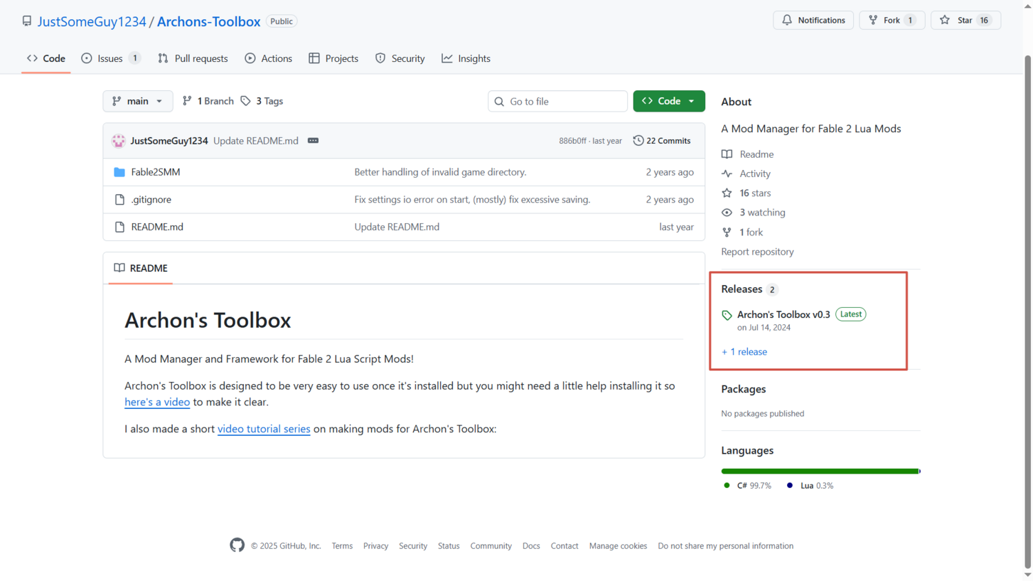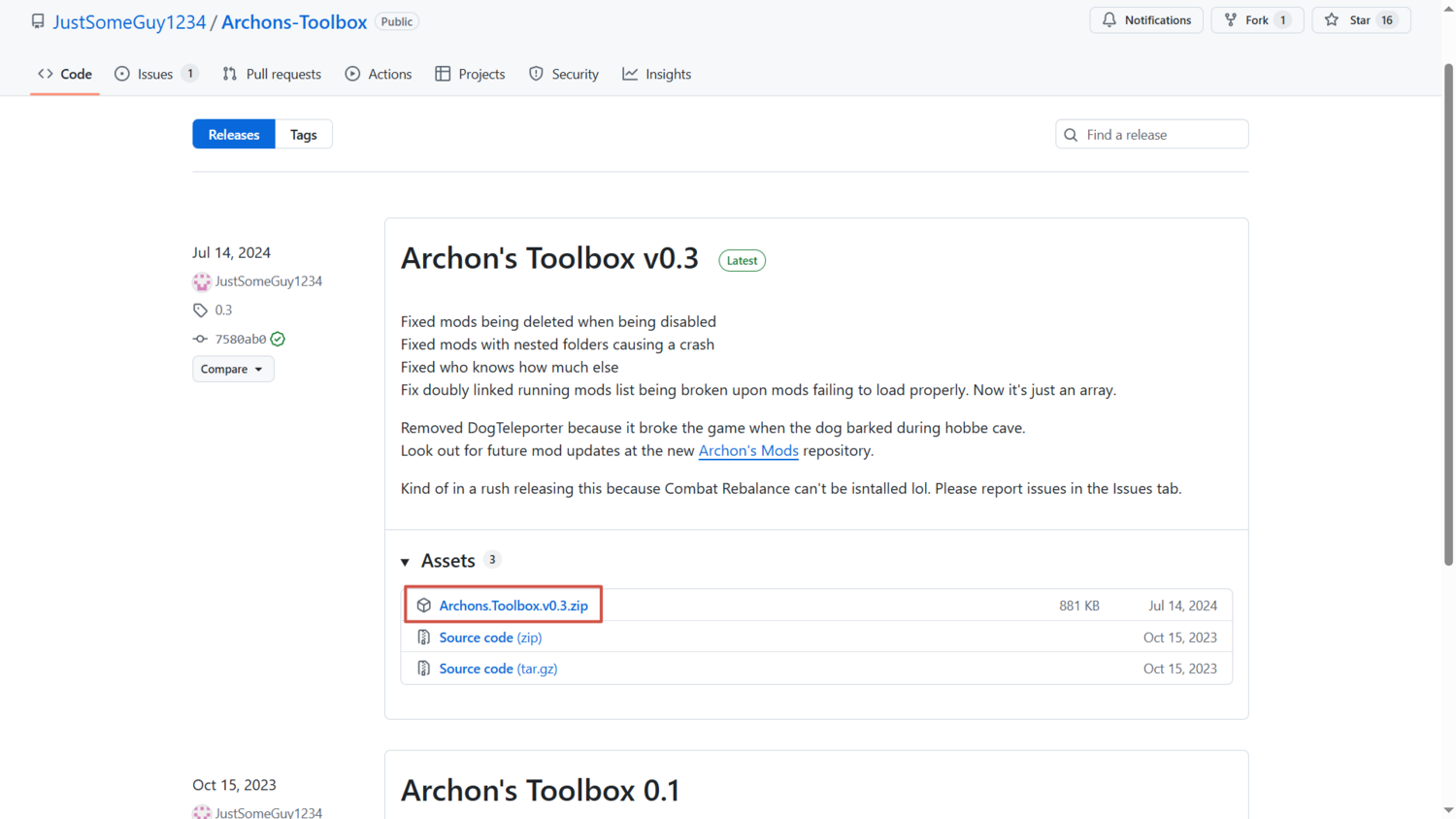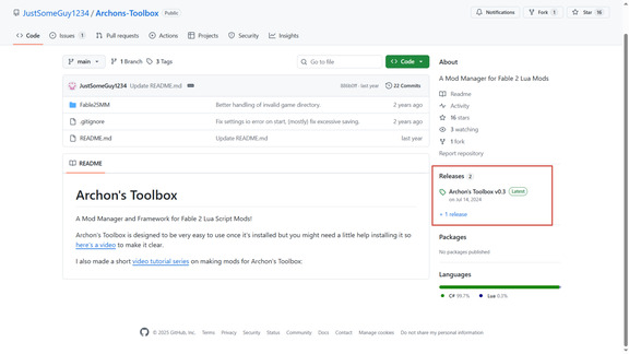 Скачать Archon's Toolbox можно в официальном репозитории автора на GitHub, из раздела Releases. На момент написание руководства там опубликована версия 0.3 от 14 июля 2024 года.