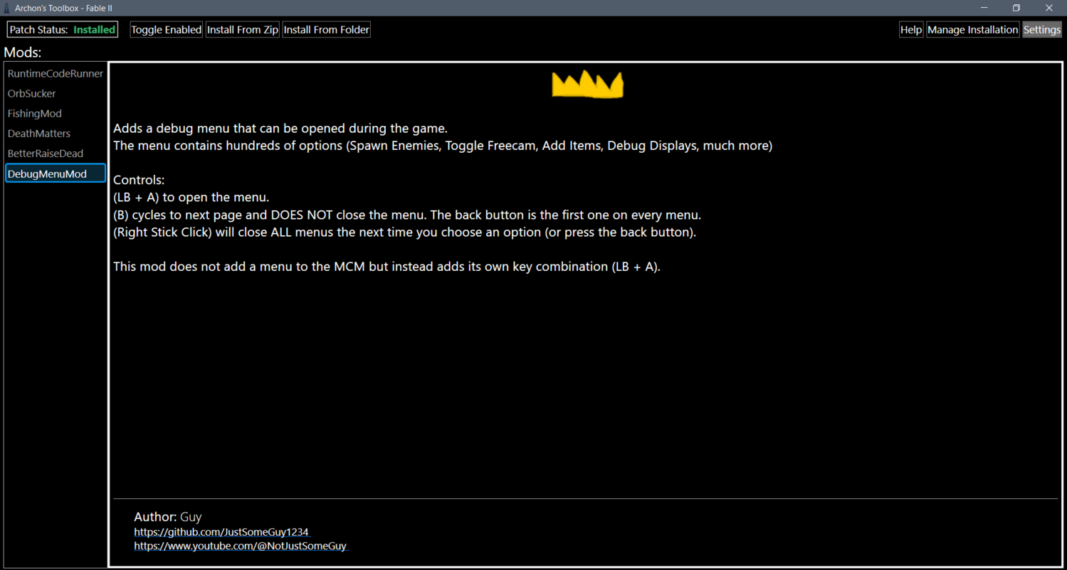 Archon's Toolbox — утилита для моддинга Fable 2, которую в 2023 году создал известный моддер Guy (он же NotJustSomeGuy) — автор мода на дебаг-меню для Fable 2 и популярного видеоруководства по запуску игры на ПК на эмуляторе Xenia.