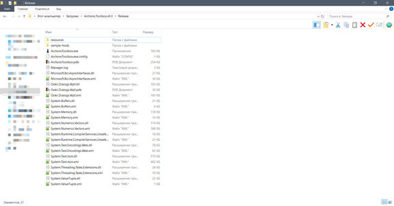 Шаг 1. После скачивания утилиты куда-нибудь распаковать zip-архив. В корневой папке находится 27 файлов и папок — в том числе папка Resources с полезной информацией и папка sample_mods с несколькими модами (в том числе тем самым дебаг-меню).