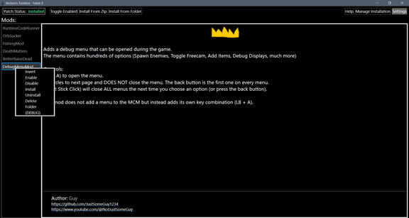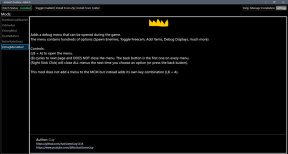 Для разработчиков модов в Archon's Toolbox предусмотрены отдельные опции.