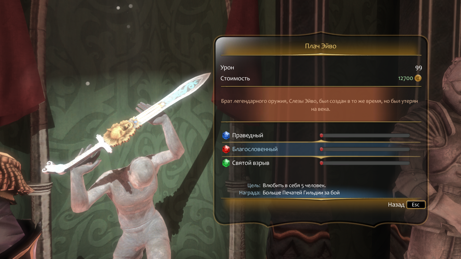 "Благословенный". Цель: влюбить в себя пять человек. Награда: больше печатей Гильдии за бой.