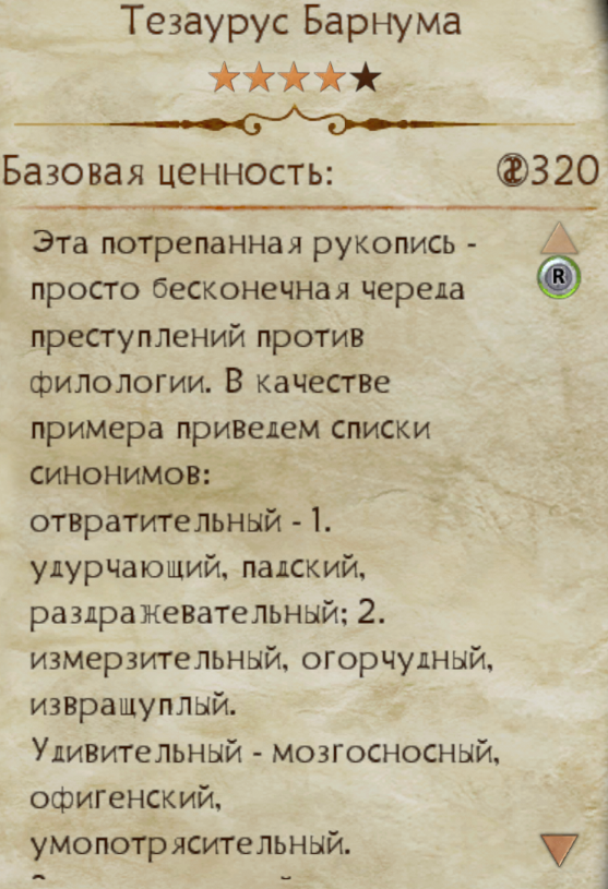 "Эта потрёпанная рукопись — просто бесконечная череда преступлений против филологии. В качестве примера приведём списки синонимов: