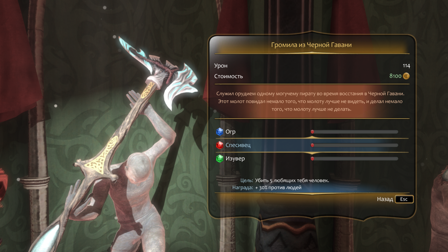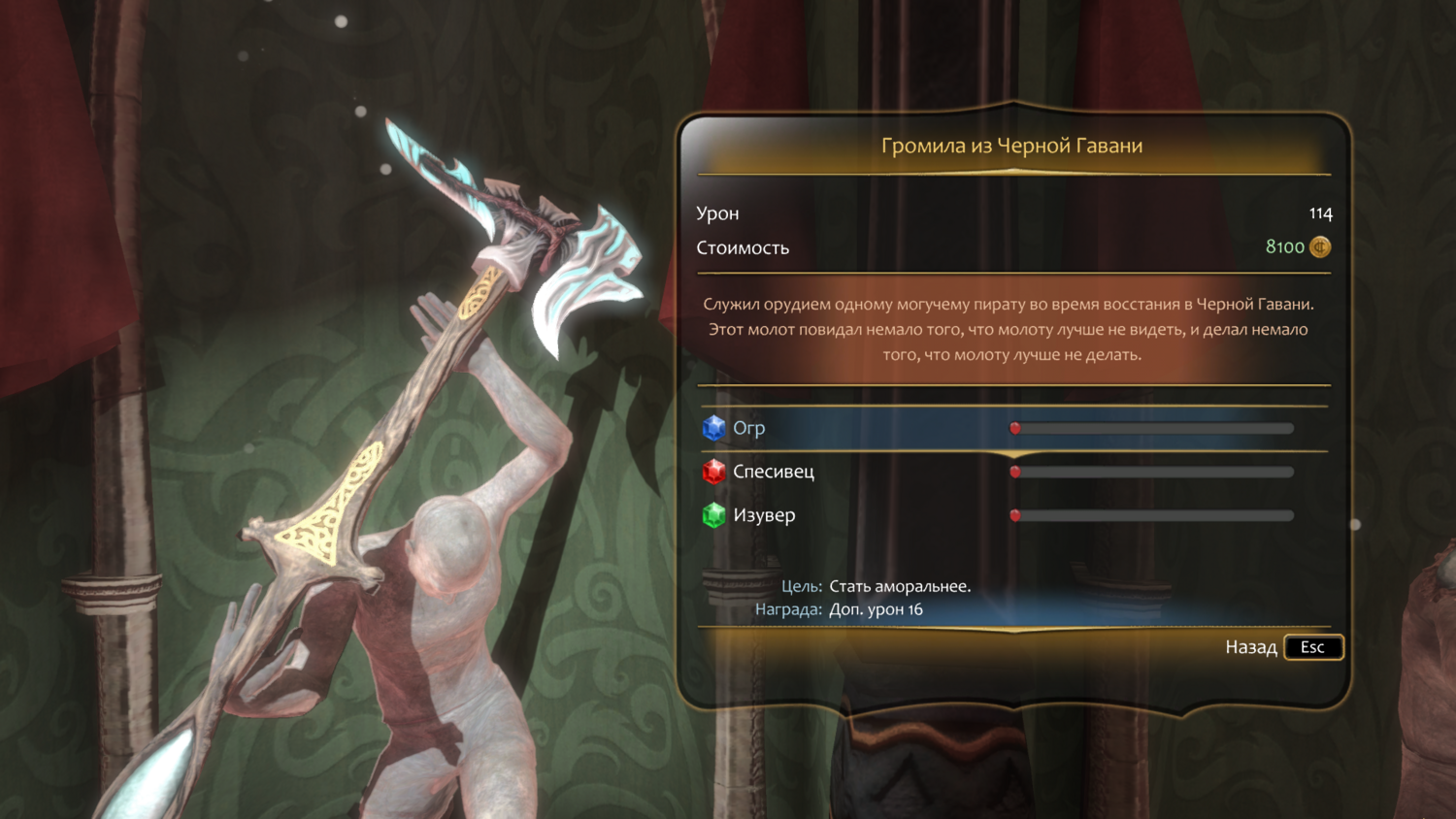 "Огр". Цель: стать аморальнее. Награда: доп. урон 16.
