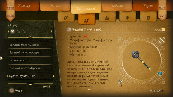 "Великого Кукольника отличали ловкие пальцы и внимание к мелким деталям. Но лишь однажды он применил свое мастерство для изготовления оружия. Результат был столь же блестящ, что и раньше".