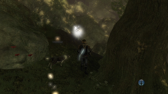 - После ворот направо, ищите в лесу, выше золотой двери.