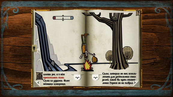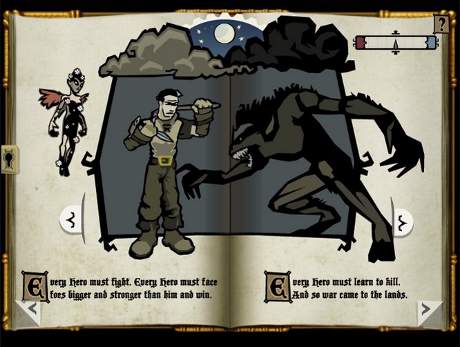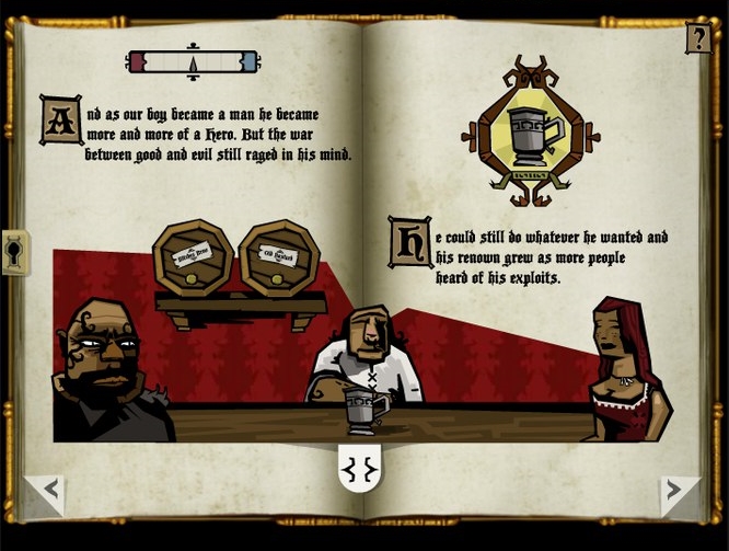На страницах Flash-игры вы читали о жизненном пути Героя. Вам несколько раз предоставляли возможность выбора между добром и злом (страницы 2-8), после чего можно было наблюдать последствия своих решений. В финале игрок узнавал, каким сделал своего Героя — добрым или злым. При этом было не важно, добрым или злым вы делали персонажа по мере прохождения данной игры: концовка зависела лишь от финального выбора, где нужно было убить оборотня или нимфу.