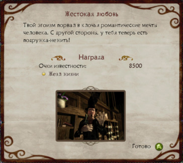 В любом случае за выполнение квеста "Жестокая любовь" Герой получит в качестве трофея "Жезл жизни".