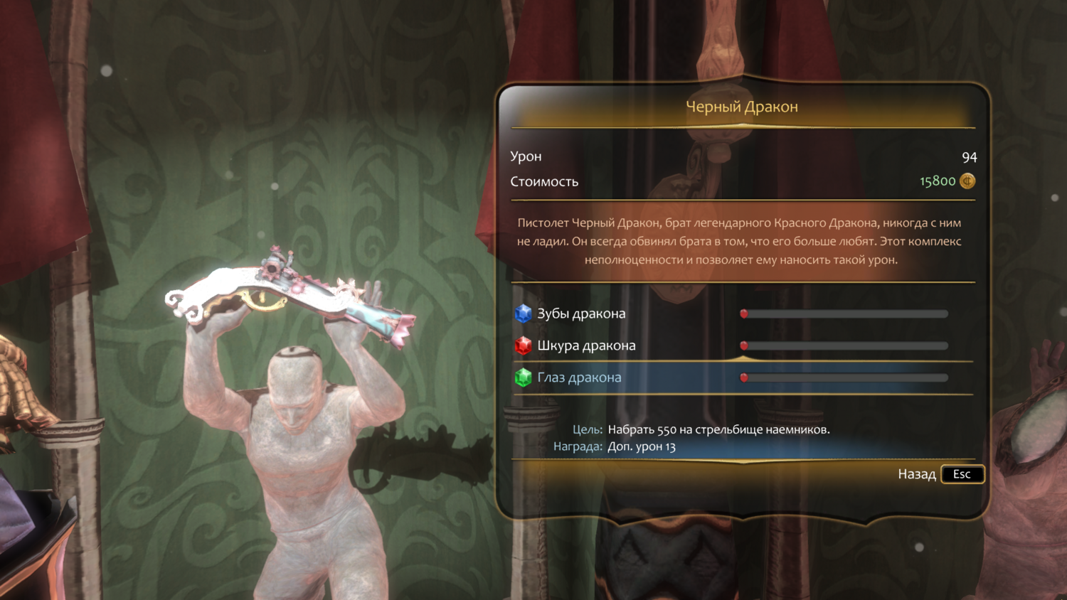"Глаз дракона". Цель: набрать 550 на стрельбище наемников. Награда: доп. урон 13.