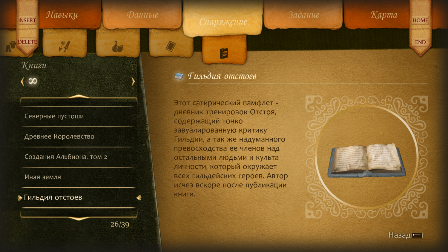 "Этот сатирический памфлет — дневник тренировок Отстоя, содержащий тонко завуалированную критику Гильдии, а также надуманного превосходства ее членов над остальными людьми и культа личности, который окружает всех гильдейских героев. Автор исчез вскоре после публикации книги".