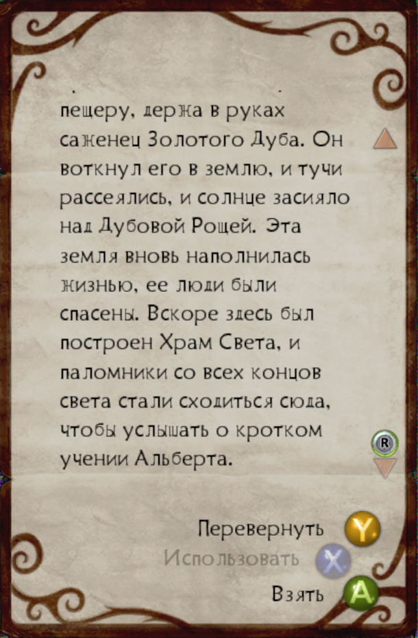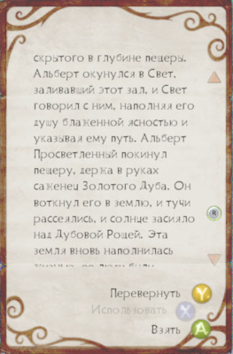 Альберт окунулся в Свет, заливавший этот зал, и Свет говорил с ним, наполняя его душу блаженной ясностью и указывая ему путь. Альберт Просветленный покинул пещеру, держа в руках саженец Золотого Дуба. Он воткнул его в землю, и тучи рассеялись, и солнце засияло над Дубовой Рощей.